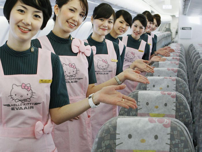 Máy bay chủ đề Hello Kitty chính thức cất cánh trong Ngày của Cha, có điều hành khách sẽ… không đi đến đâu cả Hội con gái “bánh bèo” nói riêng và hội “sến” nói chung hầu như đều có một niềm mơ ước luôn trực trào từ thuở tấm bé là được sống trong thế giới toàn màu hồng của Hello Kitty - nhân vật hư cấu của Nhật Bản nổi tiếng trên toàn thế giới. Giờ ước mơ đó ngày càng được hiện thực hoá khi chủ đề Hello Kitty xuất hiện khắp mọi nơi, gần như là trong tất cả các khía cạnh của đời sống, nổi bật nhất phải kể đến chiếc máy bay chủ đề Hello Kitty.